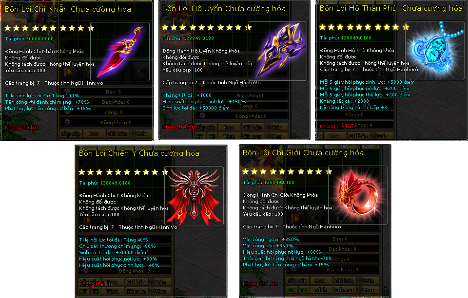 Tác Dụng: - Trừ thời gian [ngũ hành] - Sinh lực tối đa - Tỷ lệ sinh lực tối đa - Tỷ lệ nội lực tối đa |