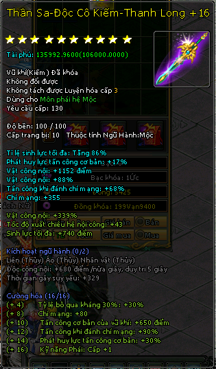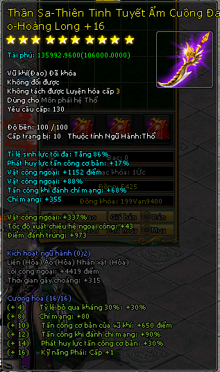 | Vũ Khí Thần Sa 4 Dòng | 200 | 100% |
