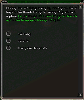 Điều Kiện: Chỉ đổi được hệ phi phong của các phái đã [Phụ Tu].