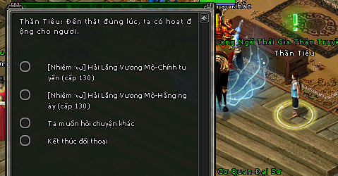 - Tìm NPC Thần Tiêu để nhận nhiệm vụ Hải Lăng Vương Mộ - Phải nhận nhiệm vụ mới có thể vào phó bản.
