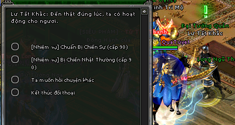 - Sau khi hoàn thành xong nhiệm vụ Hành Trình Mới - nhận nhiệm vụ Chuẩn bị Chiến Sự (nhiệm vụ chính) hoặc Bị Chiến Nhật Thường (nhiệm vụ phụ)