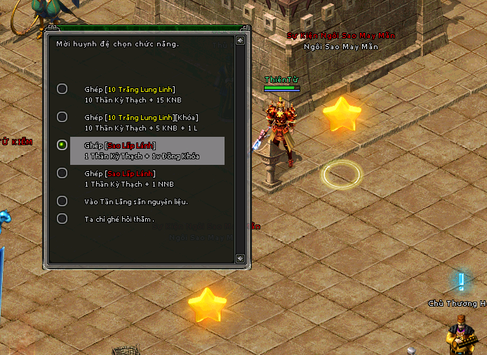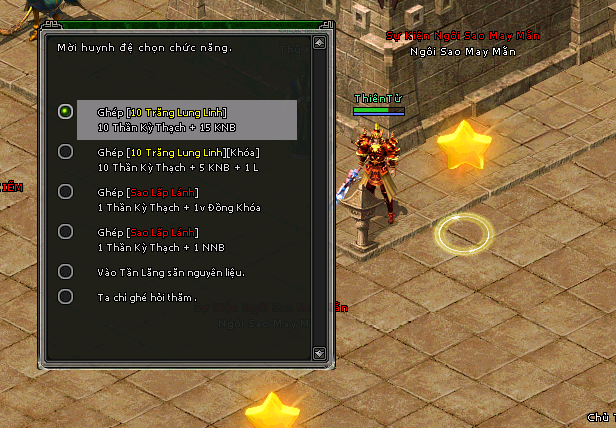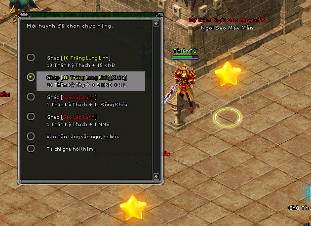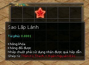 - Cần 1 Thần Kỳ Thạch + 1 vạn Đồng khóa đẻ ghép được 1 Sao Lấp Lánh