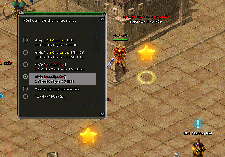 - Cần 1 Thần Kỳ Thạch + 1 Ngân Nguyên Bảo để ghép được 1 Sao Lấp Lánh